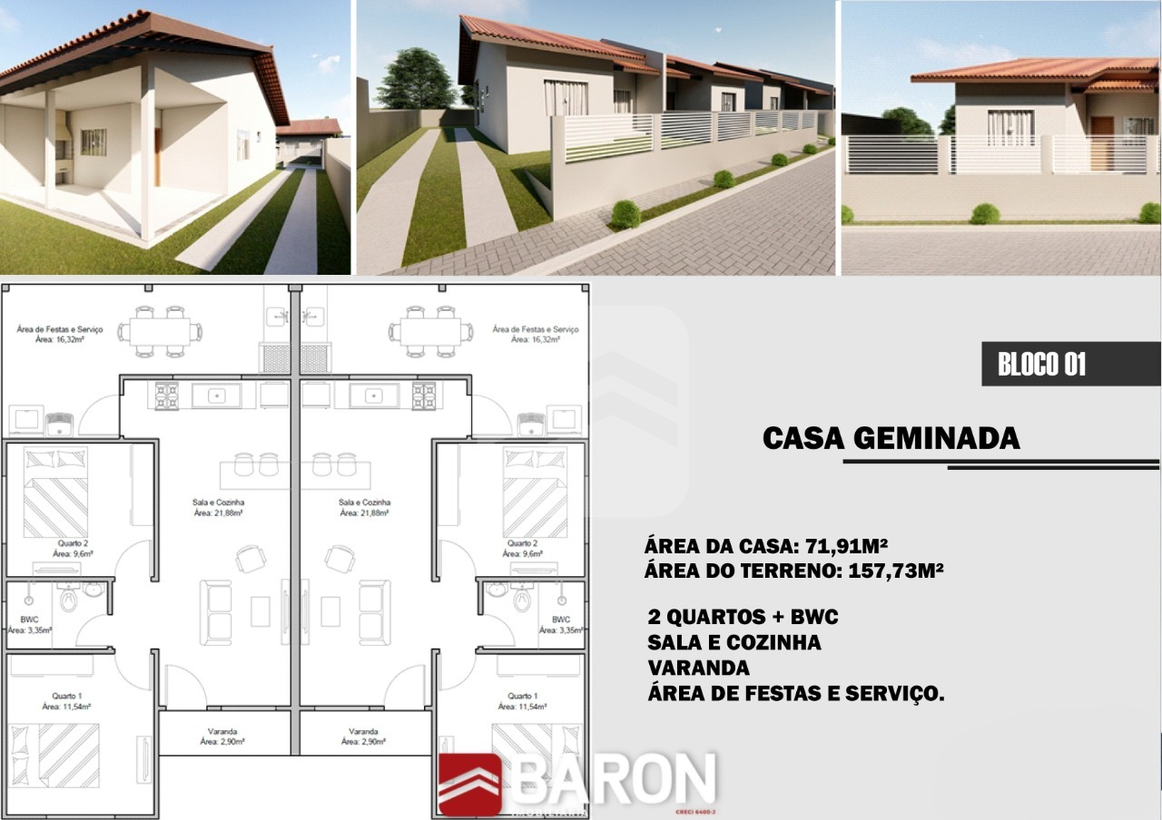R$400.000,00 / VENDACasa - 2 dormitórios | Bairro São Pedro - Guabiruba - Condomínio Luis Dietrich